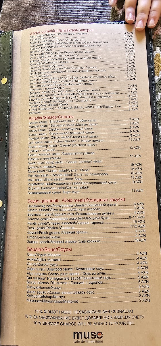Muse Cafe not only serves as a retreat but also seamlessly blends culinary enjoyment with striking views, creating a dining experience that’s truly unforgettable. So, if you find yourself wandering the charming streets of Baku, make sure to stop by Muse Cafe; it promises to provide not just food, but a delightful moment of serenity amidst your adventures.